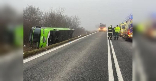 Автобус із десятками українців перекинувся на трасі у Словаччині: є постраждалі (фото)