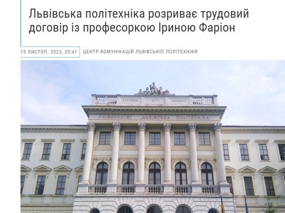 Львівська політехніка відновила допис про звільнення Фаріон